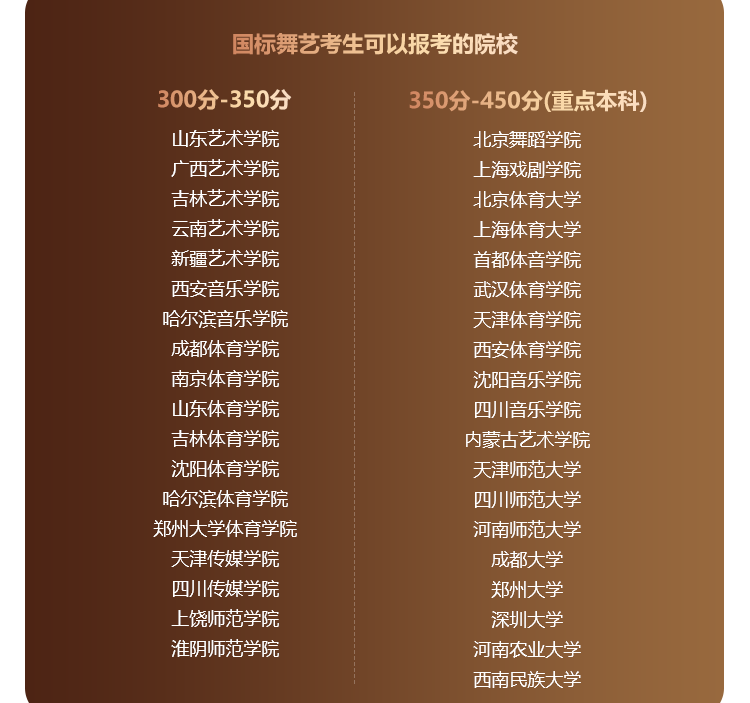 *说明:根据各院校每年招生政策不同,各个省份承认省考院校会有所不同,了解最新考情信息可咨询舞研老师。